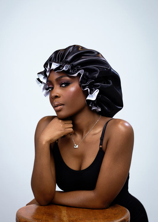 Reversible Ruffle Satin Bonnet – Two-Colour Design